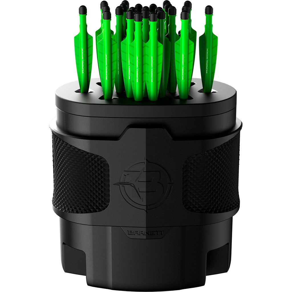 Barnett Demun Quiver: Keep your bolts organized and secure with the Barnett Demun Quiver. Designed specifically for 7-inch Demun Hyperbolts, this lightweight foam quiver boasts a 20-bolt capacity, ensuring you're always prepared for action. Its adjustable magnetic cover provides added protection during transit, while the convenient clip-on design allows for easy attachment to your belt and leg straps.