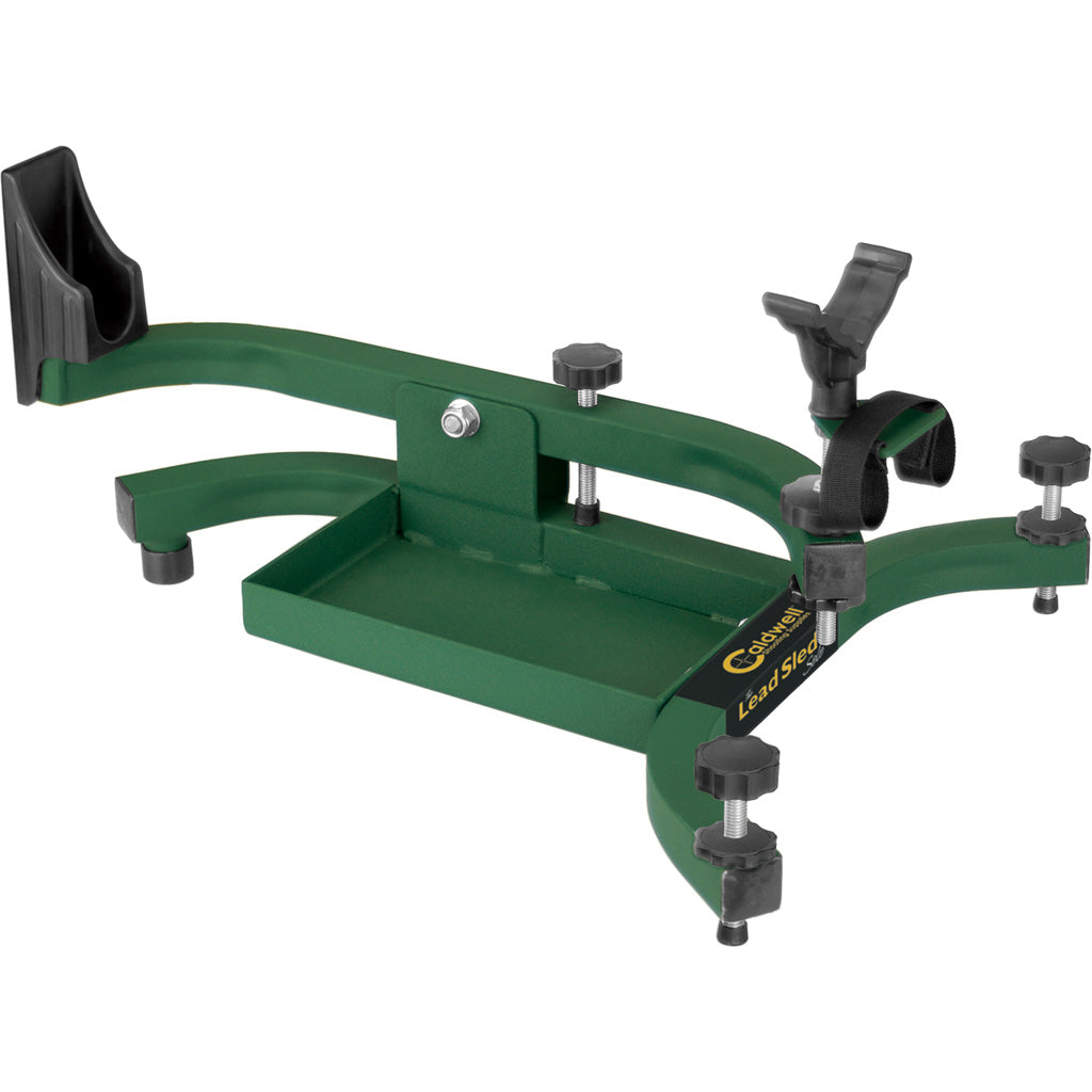 The Lead Sled Solo features a stable design that reduces recoil and keeps you locked on target. This shooting rest is ideal for sighting-in any rifles or shotgun and accommodates rifles with detachable magazines. The steel construction provides a stable and strong shooting platform. A pivoting elevation system is controlled with a single knob. The front support is height adjustable and has a durable rubberized coating that won?t scratch or damage firearms. The integrated weight tray holds a single 25 pound bag of lead shot. The weight of the stand and heavy-duty spring between the frame and the base greatly reduce recoil from the heaviest magnum calibers. An integrated strap in the front support can be used to secure the forend to the rest.