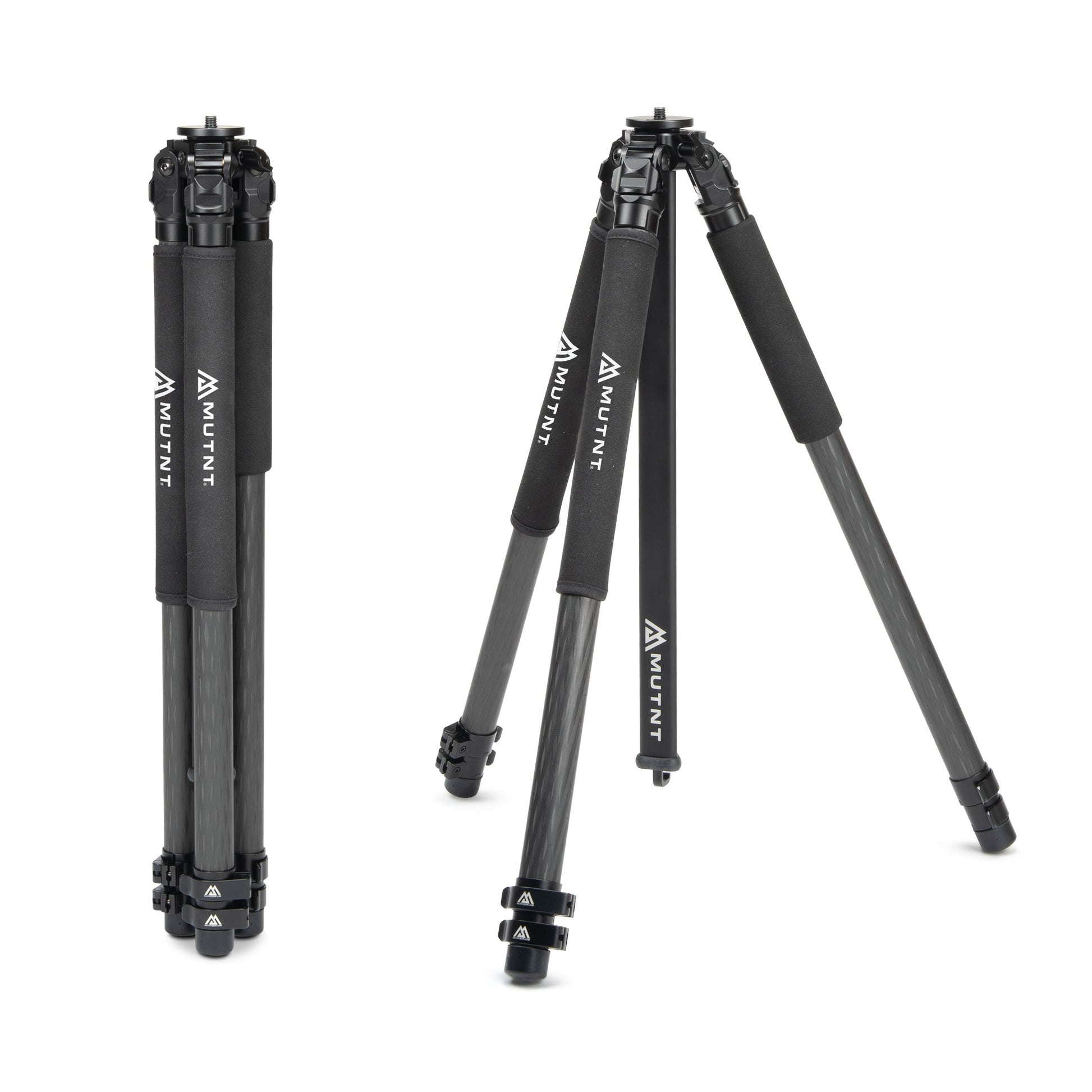 The MUTNT CF-69 Carbon Fiber tripod is the perfect choice for your camera or binoculars. Made from lightweight yet resilient carbon fiber, this tripod is still rugged and sturdy enough to support up to 44 lbs. It offers multiple adjustments to adapt to any scenario. Its revolutionary strength, best-in-class durability, and advanced engineering make it a must-have for any professional or enthusiast. It comes with a heavy-duty nylon carrying bag with a shoulder strap.