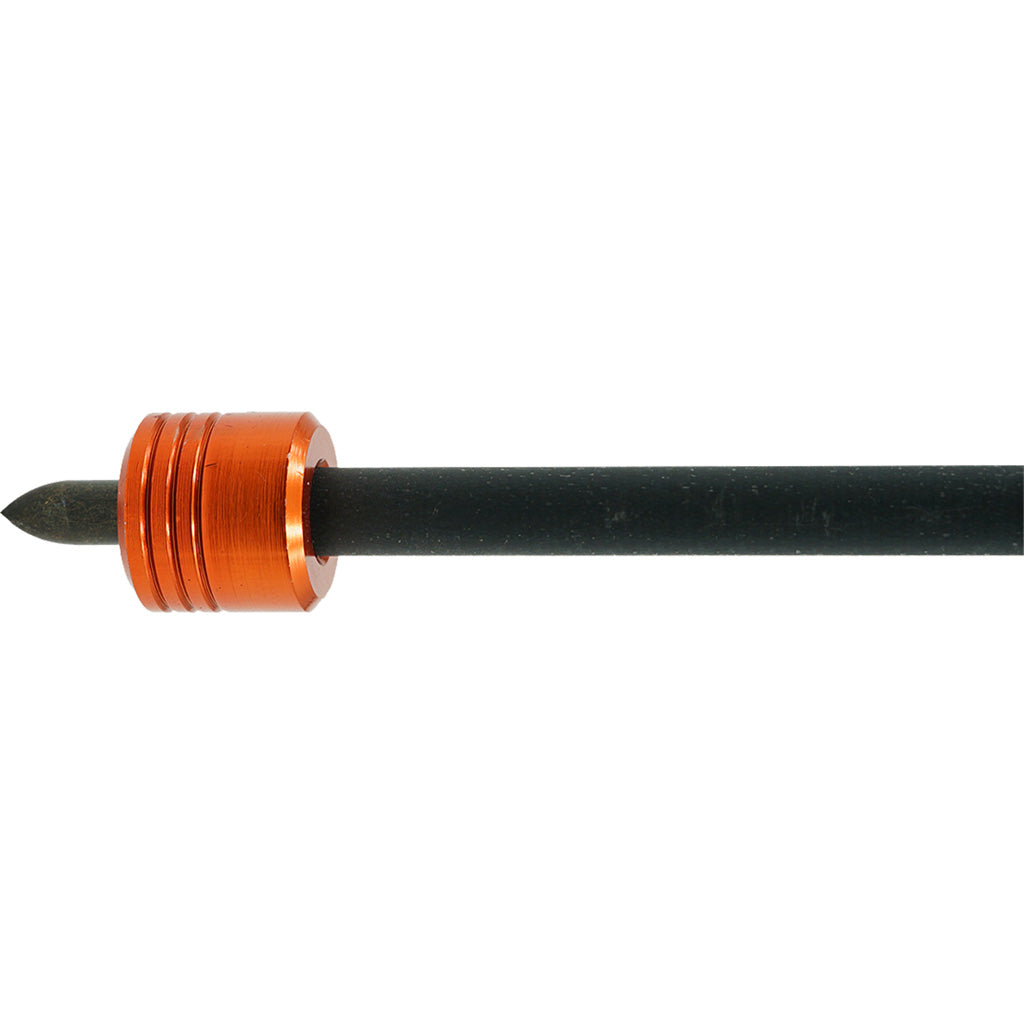 Small and ultra-portable solution for de-cocking your crossbow into target or soft surface and making crossbow safe for transporting. Fits a standard size crossbow bolt and provides an alternative to carrying an additional discharge bolt in your quiver. Made of durable machine aluminum in high-visible orange color making it easy to find. Single one piece slips onto bolt and must be used with 11/32 field point included.