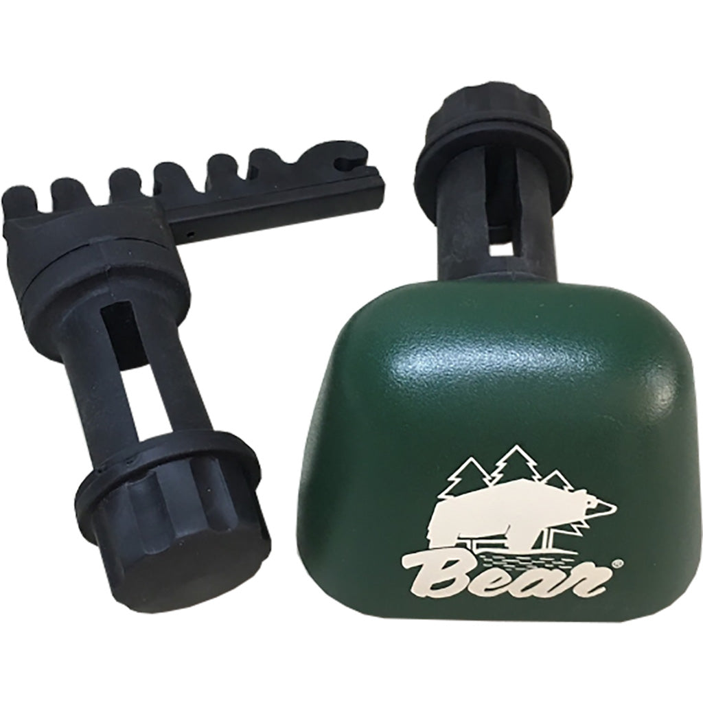 With traditional styling, the Quick-Detach Quiver offers a vintage green plastic hood with Bear Archery logo and holds up to five arrows from 5/16" to 23/64" diameter. The recurve model fits recurve bows with limbs from 1.5" to 2" wide and the longbow model fits longbow limbs from 1" to 1 3/8" wide. Quiver mount tightens over limb with a lock-down knob.