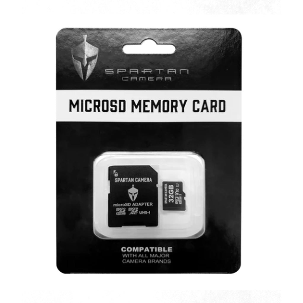 The Spartan 32 GB MicroSD Memory Card is a Class 10 UHS-I card designed for optimal performance with Spartan trail cameras including the GoLive 2, Eclipse, and Lumen models. It offers fast data transfer speeds ideal for high-resolution images and full HD 1080p video recordings. The included SD adapter ensures compatibility with all major camera brands and devices that accept standard SD cards. This card is reliable, durable, and ready for extended field use in demanding conditions.