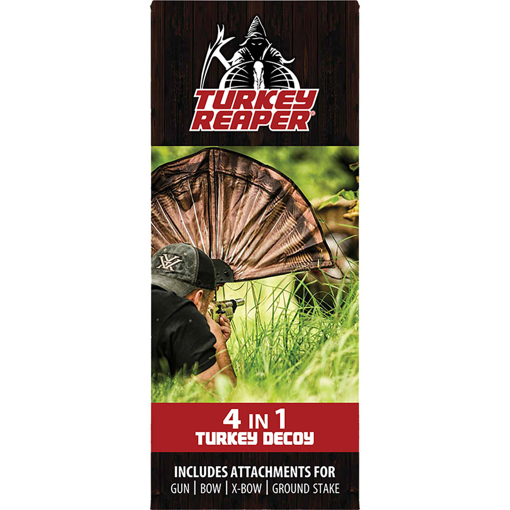 Simply attach the Turkey Reaper to your gun, bow, crossbow or ground stake and crawl towards a strutting gobbler and get ready for action because he'll do the rest.