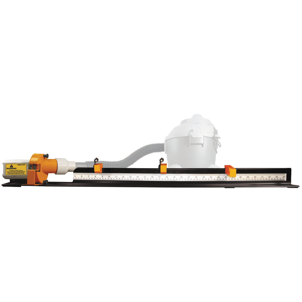 Designed to cut all types of arrow shafts with a 8,000 RPM blade speed and heavy-duty 110-volt motor. Features a fixed measuring scale to ensure accurately cut arrows every time. Includes dust collector adapter that will hook up to a shop vac (not included).